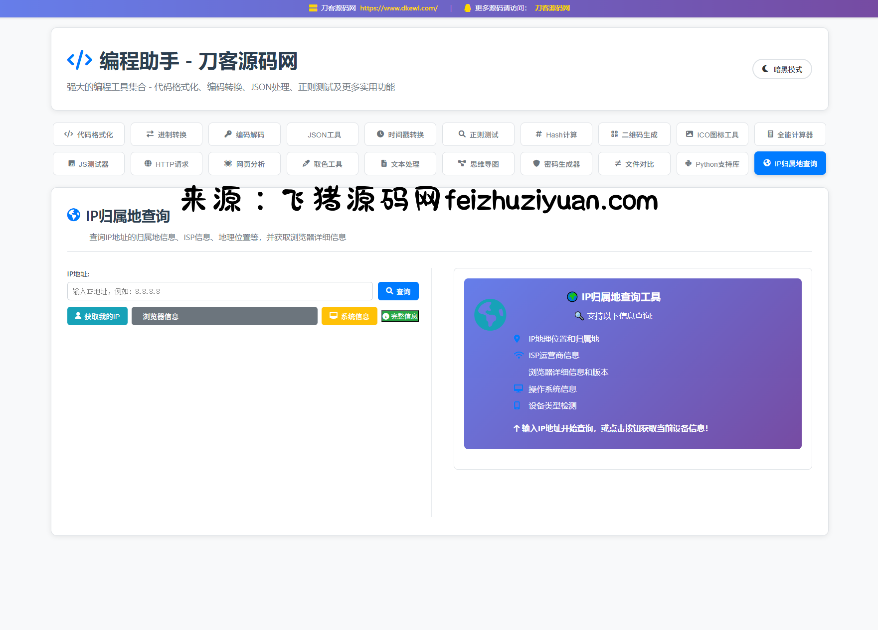 站长在线工具箱源码/编程助手源码/WEB工具箱 带暗黑模式 亲测可用 附完整教程