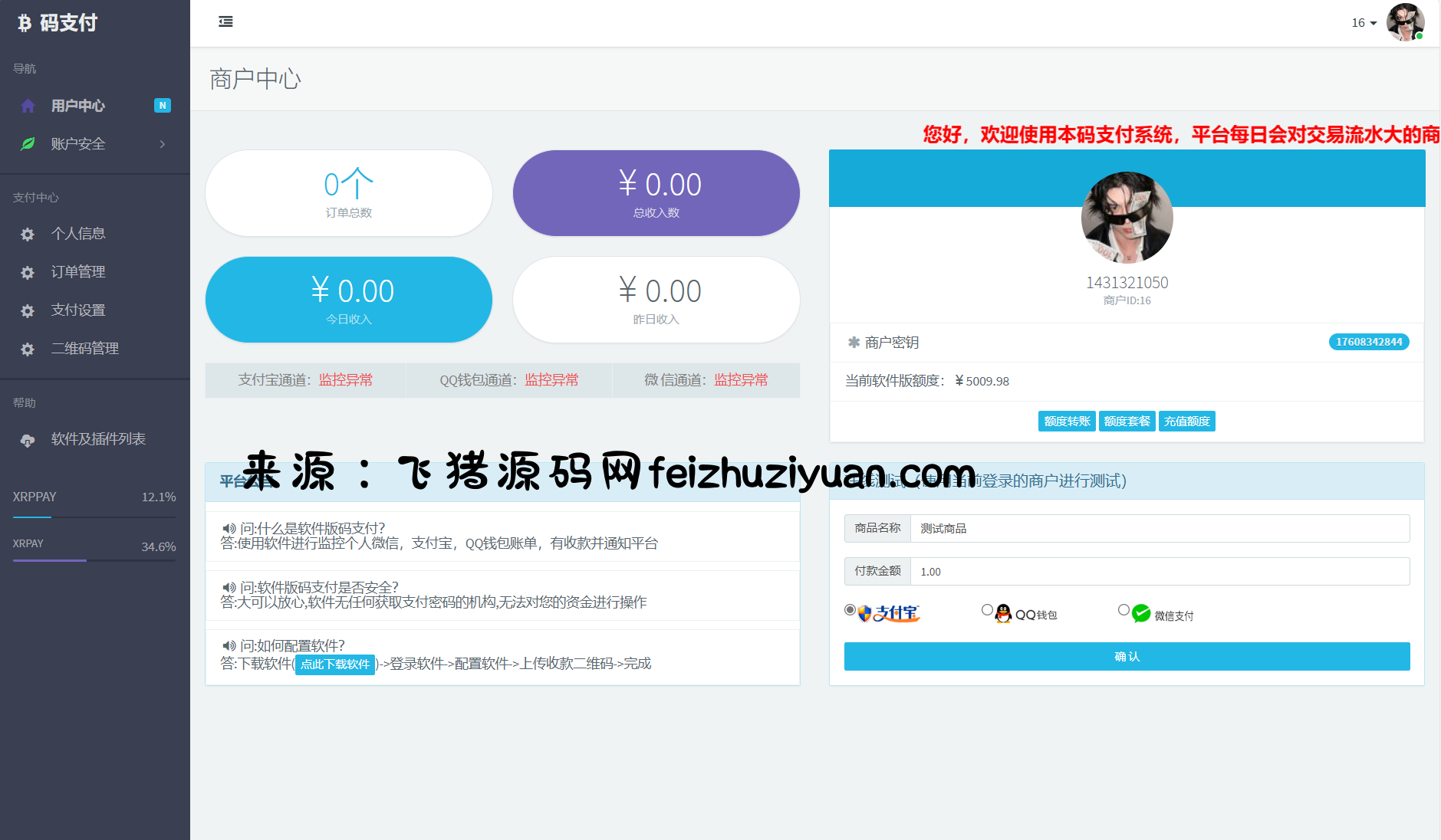 商户端:实际业务管理支付人,管理支付二维码信息,查看支付订单,需要注册商户信息