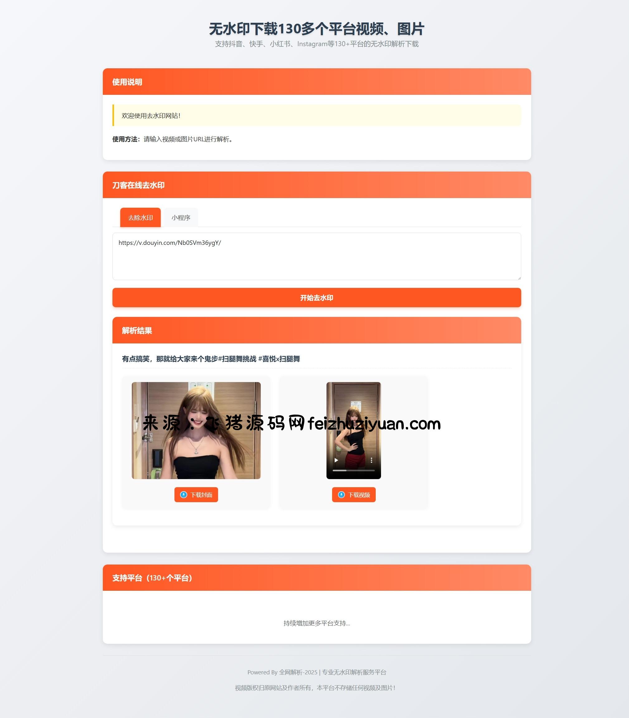 最新聚合短视频解析去水印系统源码 带后台 自适应双端 轻量化 全开源 亲测可用