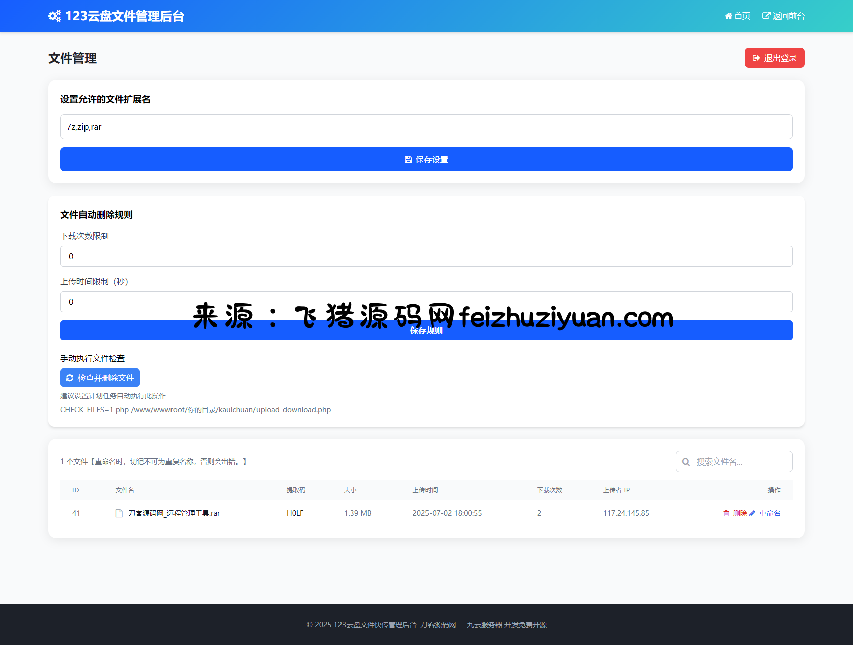 最新临时文件快传系统源码 轻量化 带后台 首发feizhuAdmin3个月前更新关注私信675106最新临时文件快传系统源码 轻量化 带后台 首发此内容为付费资源,请付费后查看¥2000黄金会员免费钻石会员免费立即购买您当前未登录!建议登陆后购买,可保存购买订单付费资源已售 22 承接技术与支持服务 本站可提供技术支持,另外本站可承接:各类网站、各类平台、各类源码、各类 APP、各类小程序、各类软件、各类盘口、Telegram 所有机器人开发定制、以及手机电脑远控的搭建开发定制都可以,最快当天就能出方案! 提供网站后台、域名、源码、服务器,一站式服务。从注册域名、配置服务器到后期维护全程包办,飞猪站长手把手教到会用,重要项目 3 天内上线,不玩套路,有问题随时找我们免费处理,让您省心又省力! 简介: 最新临时文件快传系统源码 轻量化 带后台 首发 轻松上传文件并生成提取码分享给他人,无需注册,方便快捷。 鸣谢投稿人:一九云服务器 图片: 购买须知 为了避免给您带来不必要的困扰,请务必仔细看下面的说明: 1. 本源码没有任何后门,也不会和我们服务器有任何通信,请您放心使用。 2. 本源码一次性买断,没有二次费用,并享受免费更新。 3. 为了使我们的产品能长久稳定发展,请不要使用我们的产品从事违反中华人民共和国法律、违反公序良俗的活动,否则我们有权拒绝服务,并配合有关单位予以处置。如果您不符合条件,请勿购买。 4. 售后是指通过 Telegram 与客服联系处理问题,售后过期不影响您对主题的使用和更新。免费三个月售后服务。售后服务时间为工作日早9点到晚5点。如果不在线可以 Telegram 留言,我们会尽快给您答复。 5. 售后服务包括程序的使用、BUG 的处理、意见建议等。不包括技术服务、网站优化、二次开发、环境配置、服务器运维等。 6. 代码类商品属于数字化商品,具有可复制性,不支持退款,详见《网络交易管理办法》第二章 第16条 第三类。 7. 购买前请仔细阅读我们的用户协议与免责声明: 用户协议 OR 免责声明。 © 版权声明 © 版权声明 文章版权归作者所有,未经允许请勿转载。本站资源均来自互联网,仅供研究学习,禁止违法使用和商用,产生法律纠纷本站概不负责!如有侵犯您的权益请与我们联系! 1. 欢迎您使用飞猪资源网(以下简称“本站”)。在您使用本站各项服务之前,请仔细阅读本《免责声明》。 2. 凡以任何方式登陆、浏览本站内容或直接、间接使用本站内容者,视为同意本站《免责声明》。 3. 本站提供的程序源码没有附带任何运营数据,只保证程序功能合法性、完整性。购买后对程序添加数据属于个人行为,与本站和开发者无关。 4. 本站不给涉黄、涉黑、涉赌、涉毒、涉电信诈骗等任何涉嫌违法活动站点提供任何技术帮助,如发现源码被用于非法站点,本站将列入售后黑名单,永不再提供任何服务。 5. 程序代码仅供学习用途,不得商用。违者导致的侵权、违法等后果需自行承担法律责任,本站和程序开发者不承担任何连带责任。 6. 未经本站允许不得将源码进行转售、分发等行为,请尊重作者劳动成果和版权,谢谢支持。 7. 本网页及演示站内容、图片、视频为模板演示数据,所有图片均来源于网络,版权归原作者所有。如有侵权,请联系我们书面反馈,核实后将立即删除。 8. 本站有权根据实际需要修改本协议,服务条款的解释权与修改权归本站所有。 THE END网站源码 文章版权归作者所有,未经允许请勿转载。本站资源均来自互联网,仅供研究学习,禁止违法使用和商用,产生法律纠纷本站概不负责!如果侵犯了您的权益请与我们联系!点赞106赞赏 分享QQ空间微博QQ好友海报分享复制链接收藏