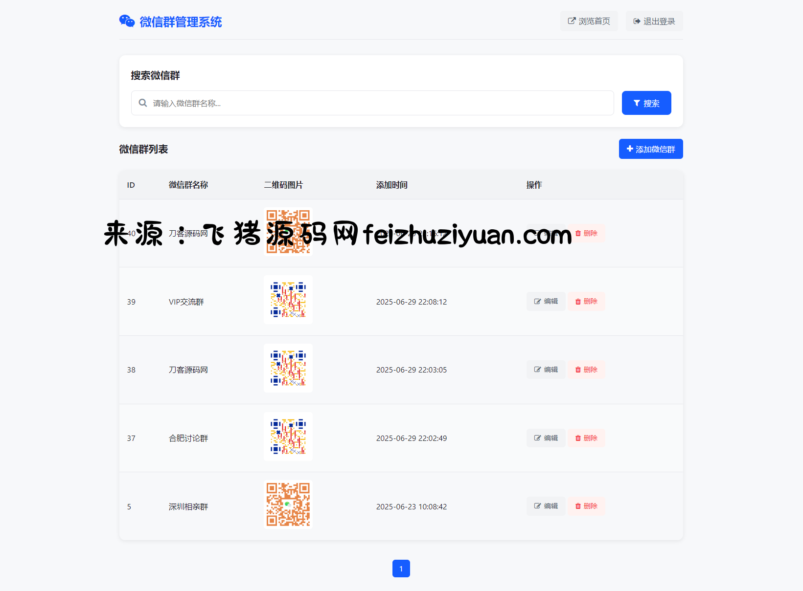 2.管理员后台可以操作编辑所有用户上传的微信群和二维码。
