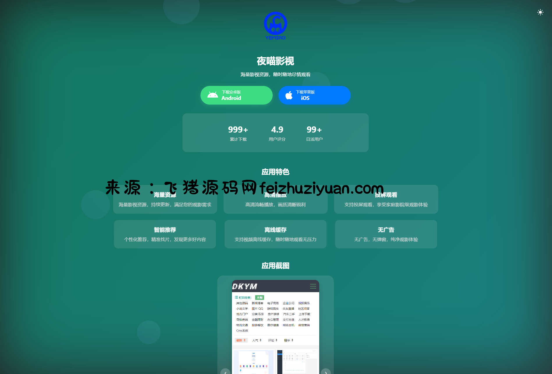 非常不错的一款APP软件下载介绍页源码,带有iOS和安卓下载入口,自适应手机、电脑端