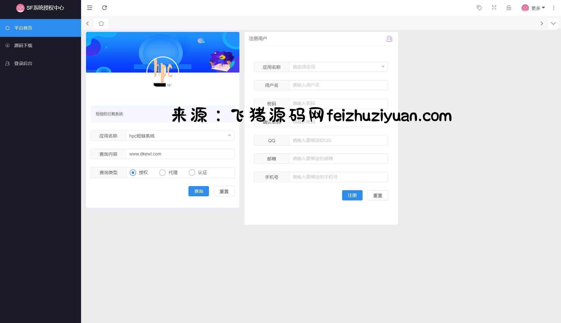 SF多应用综合验证系统是一款基于 thinkphp V6.0.9 和 EasyWeb iframe开发的系统
