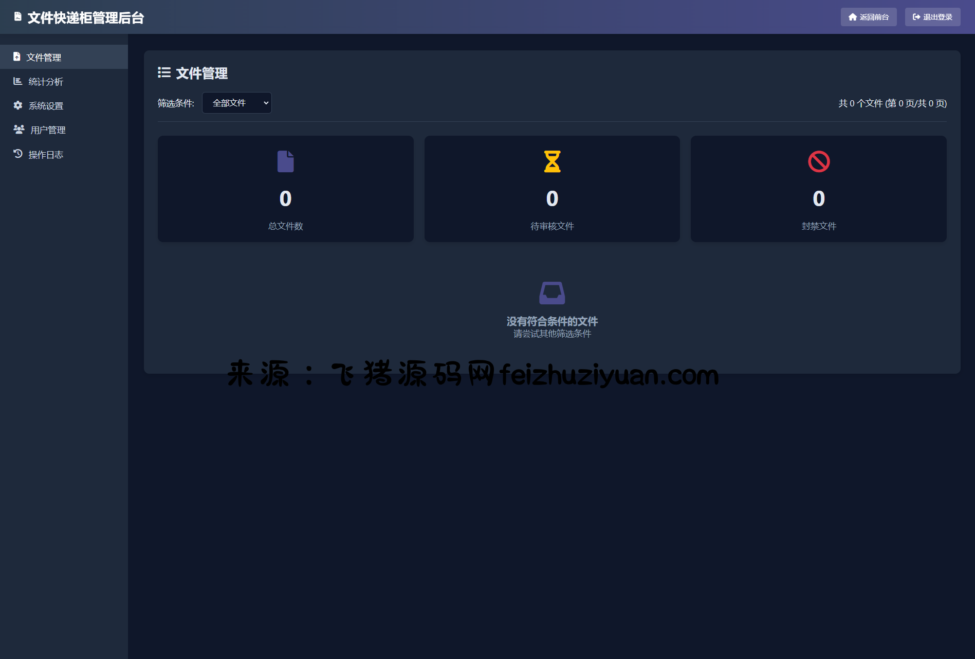 4.支持文件封禁,封禁后输入取件码跳到封禁也面,直链也是一样跳到封禁页面,拥有后台登录后台可以审核封禁文件,文件到期后会跳到文件过期界。