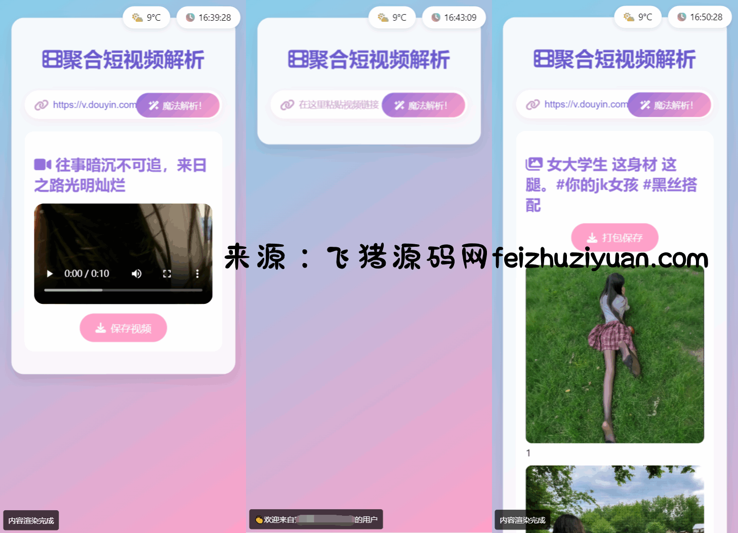 全新二次元聚合短视频解析去水印系统源码 自适应双端