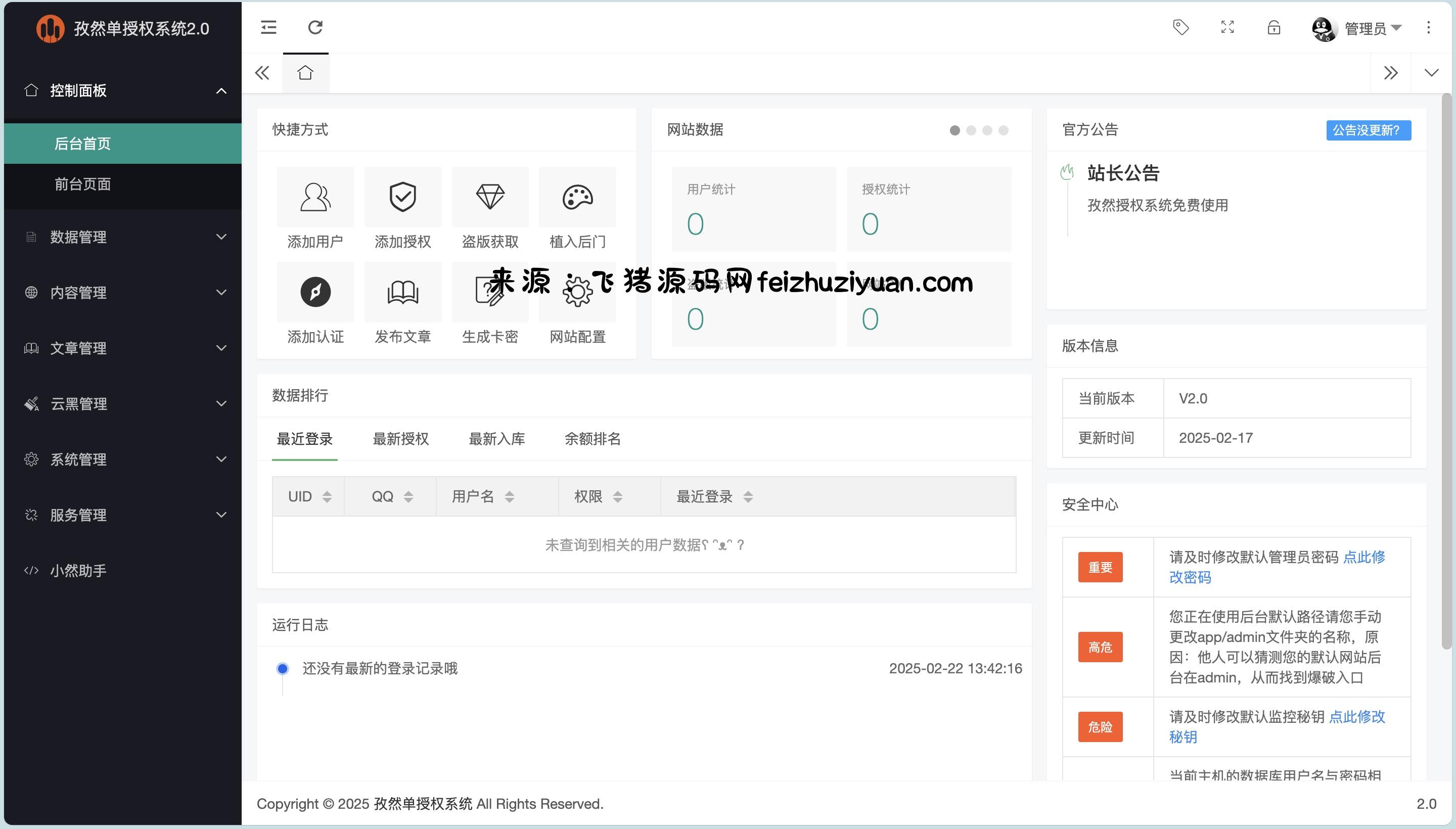 孜然单授权V2.0系统,延续了2022年开发的孜然多应用授权系统V1.0
