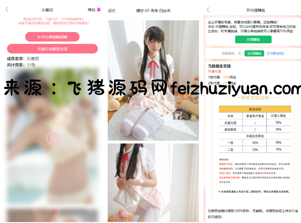 这是一款开源的写真图片及视频打赏系统源码,顾名思义他可以做写真图片打赏站也可以做视频打赏站,支付对接了易支付,拥有独立代理后台,全部源码无加密,另外也可以配合付费进群使用。