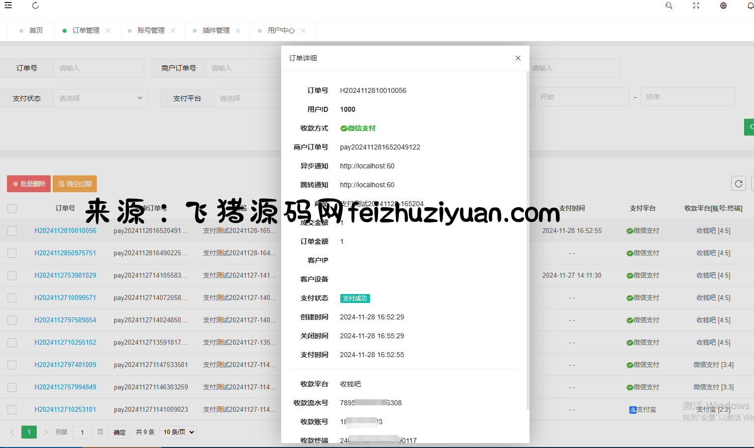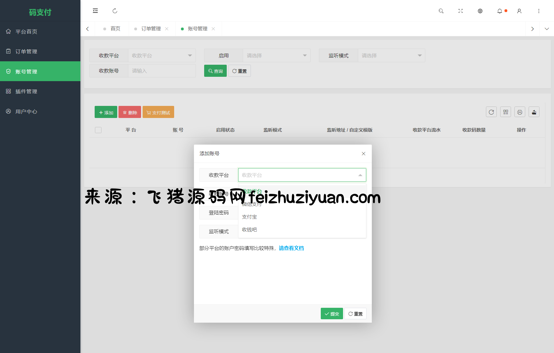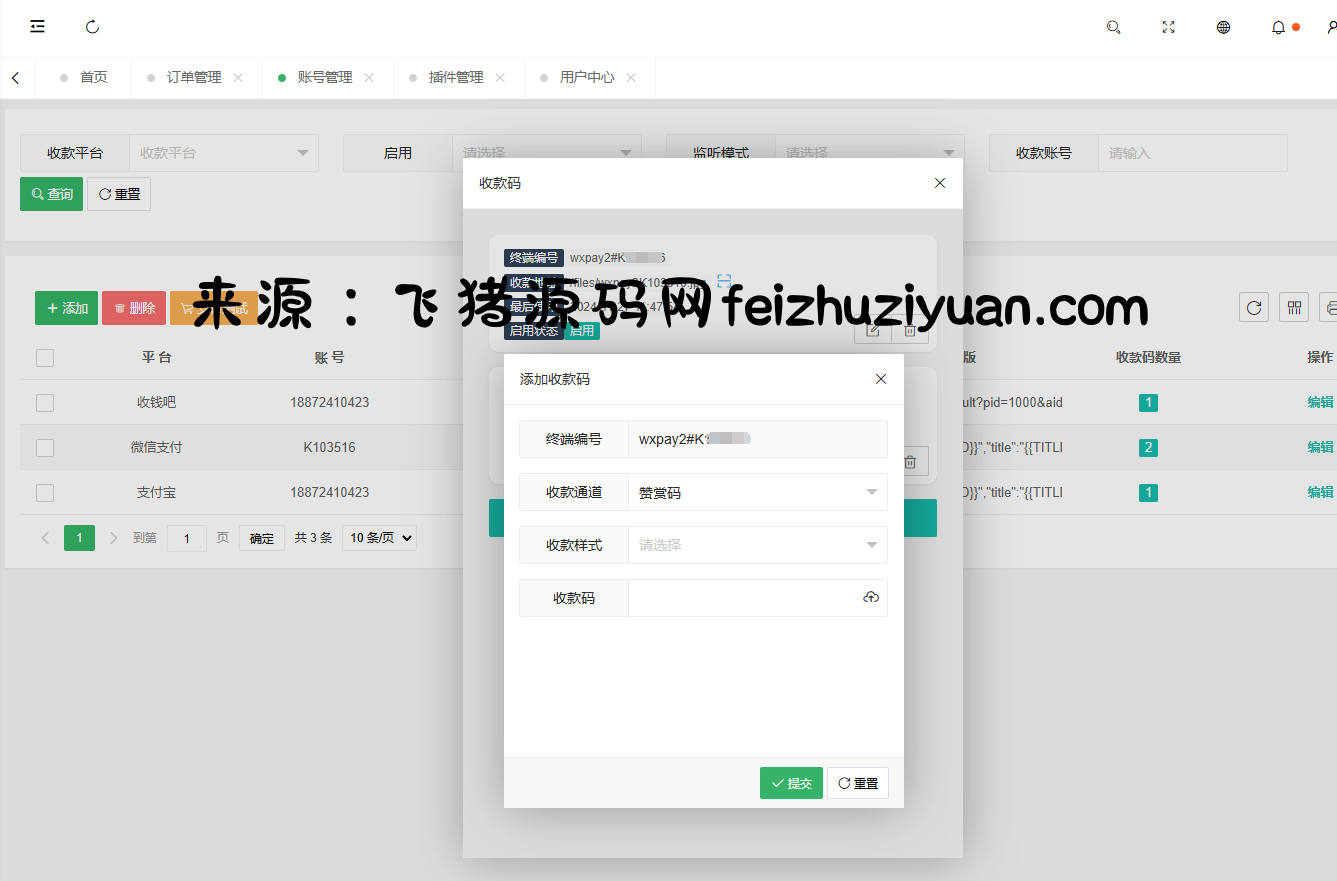 支付宝插件alipay默认安装,支持收钱码、经营码,2个通道,需挂机监听