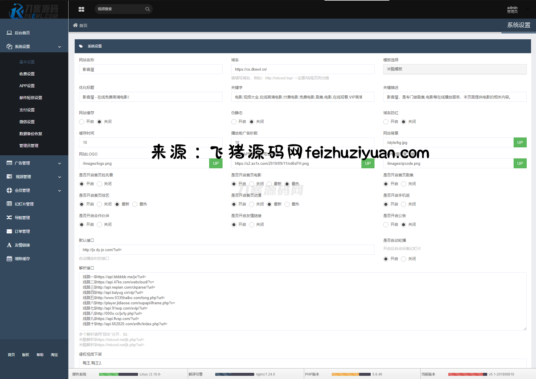 进入后台修改系统信息改成你自己的即可,后台可添加修改广告位。