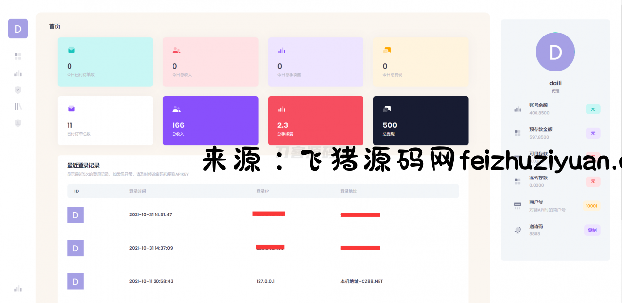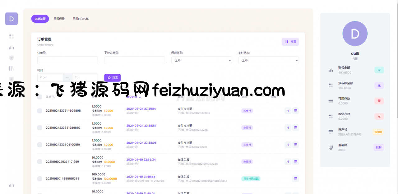 系统采用FastAdmin框架独立全新开发,安全稳定,系统支持代理、商户、码商等业务逻辑。
