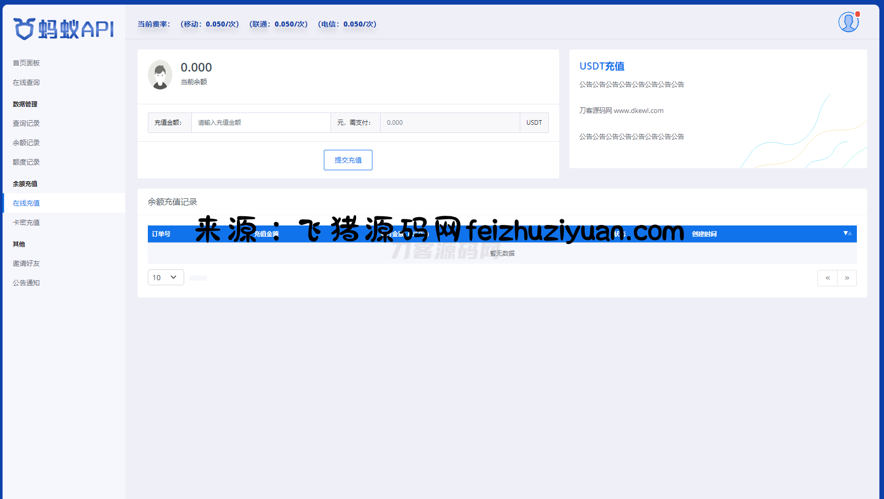 本套系统是用thinkphp6.0框架开发的,PHP版本需8.1以上,可查询手机号话费余额、归属地和运营商等信息,系统支持用户中心在线查询和通过API接口对接发起查询,用户余额充值是对接usdt接口或者通过后台生成卡密,源码全开源,支持懂技术的人二次开发~