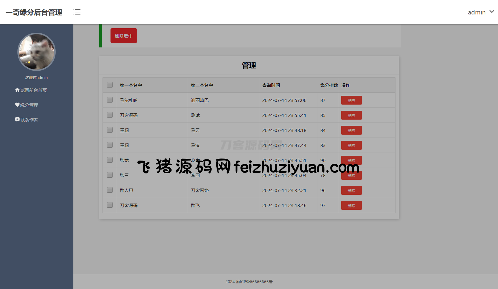 基于PHP+MYSQL开发制作的趣味测试网站源码。可在后台提前设置好缘分,