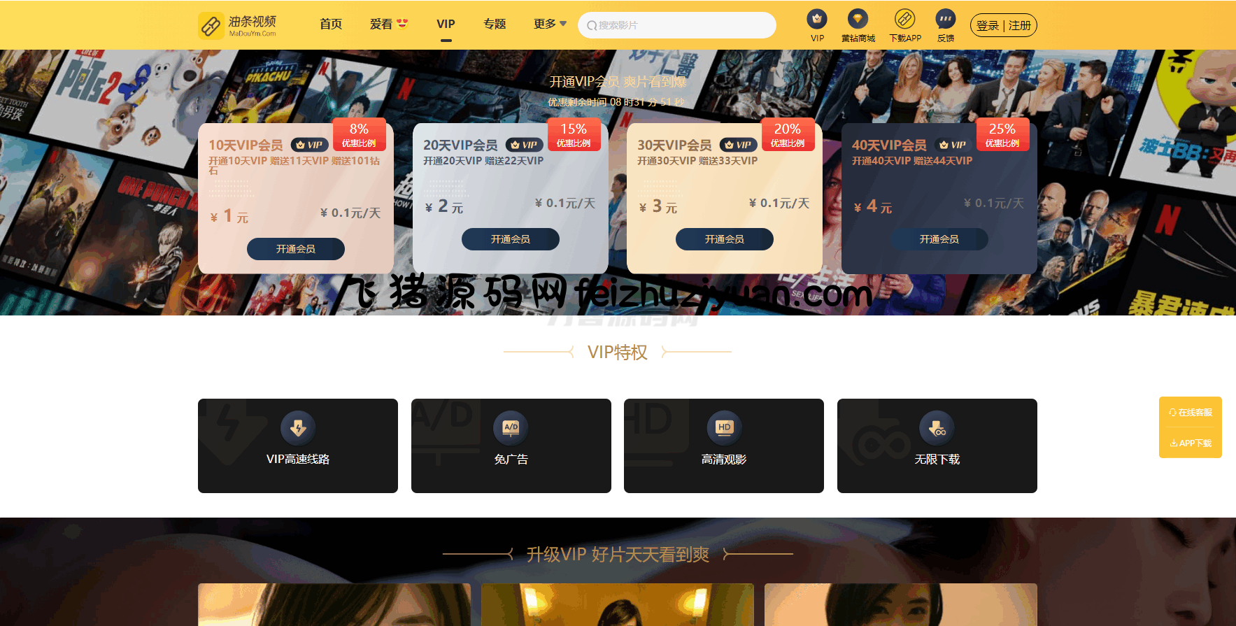 5. 三个播放界面,未注册会员、普通注册会员,VIP会员看到的播放界面提醒都不一样