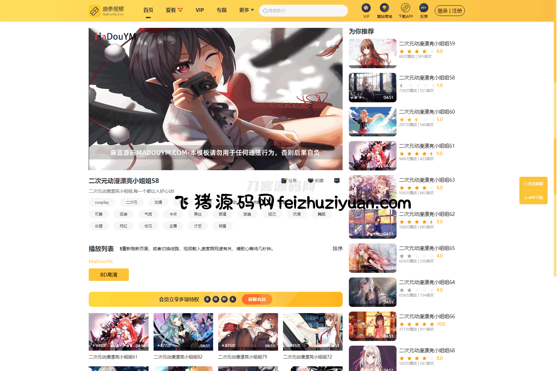 2. 视频,演员,专题,收藏,会员系统模块齐全,支持子分类,不再只显示单一的主分类