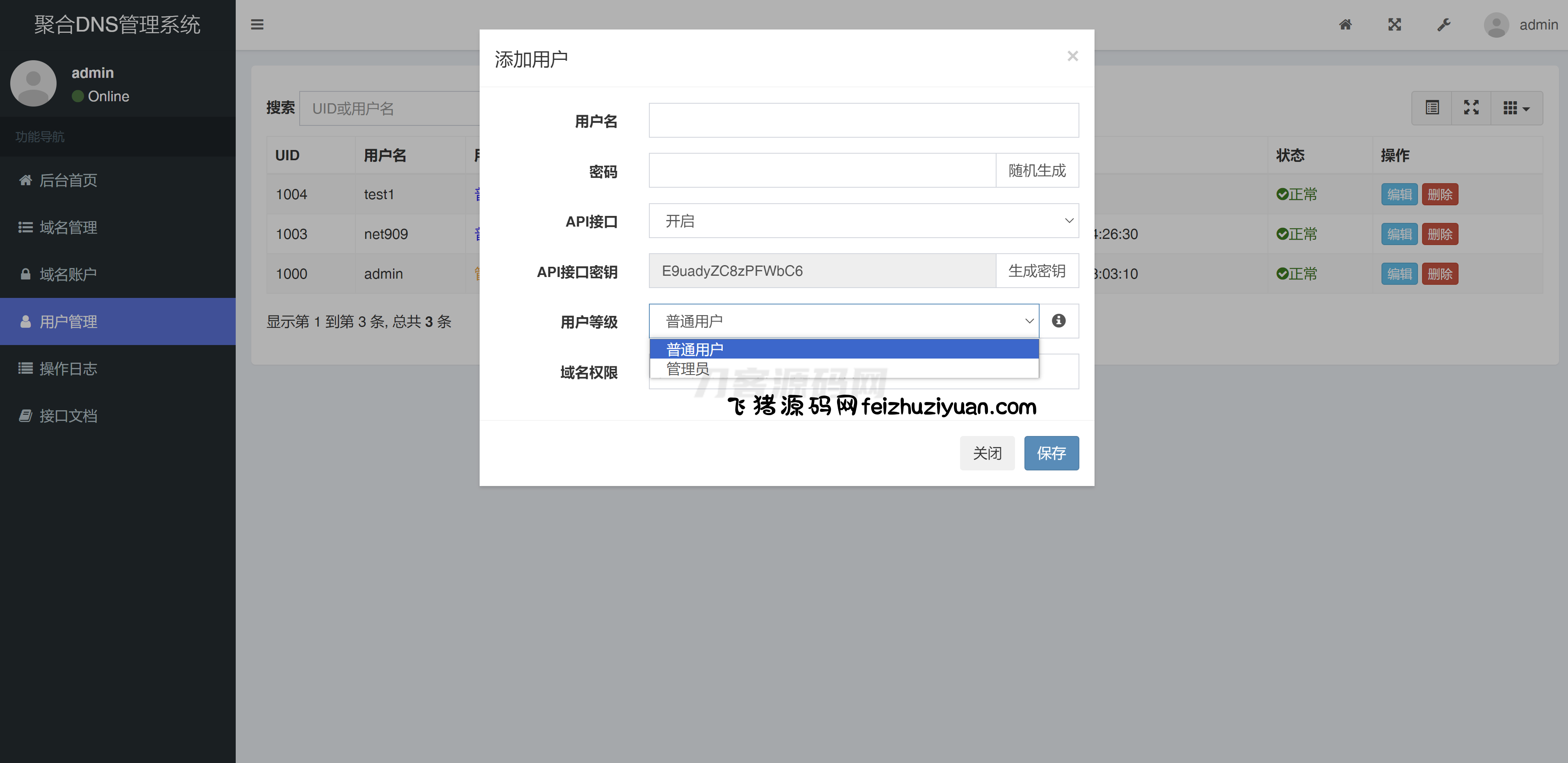 本系统支持多用户,每个用户可分配不同的域名解析权限;支持API接口,支持获取域名独立DNS控制面板登录链接,方便各种IDC系统对接。
