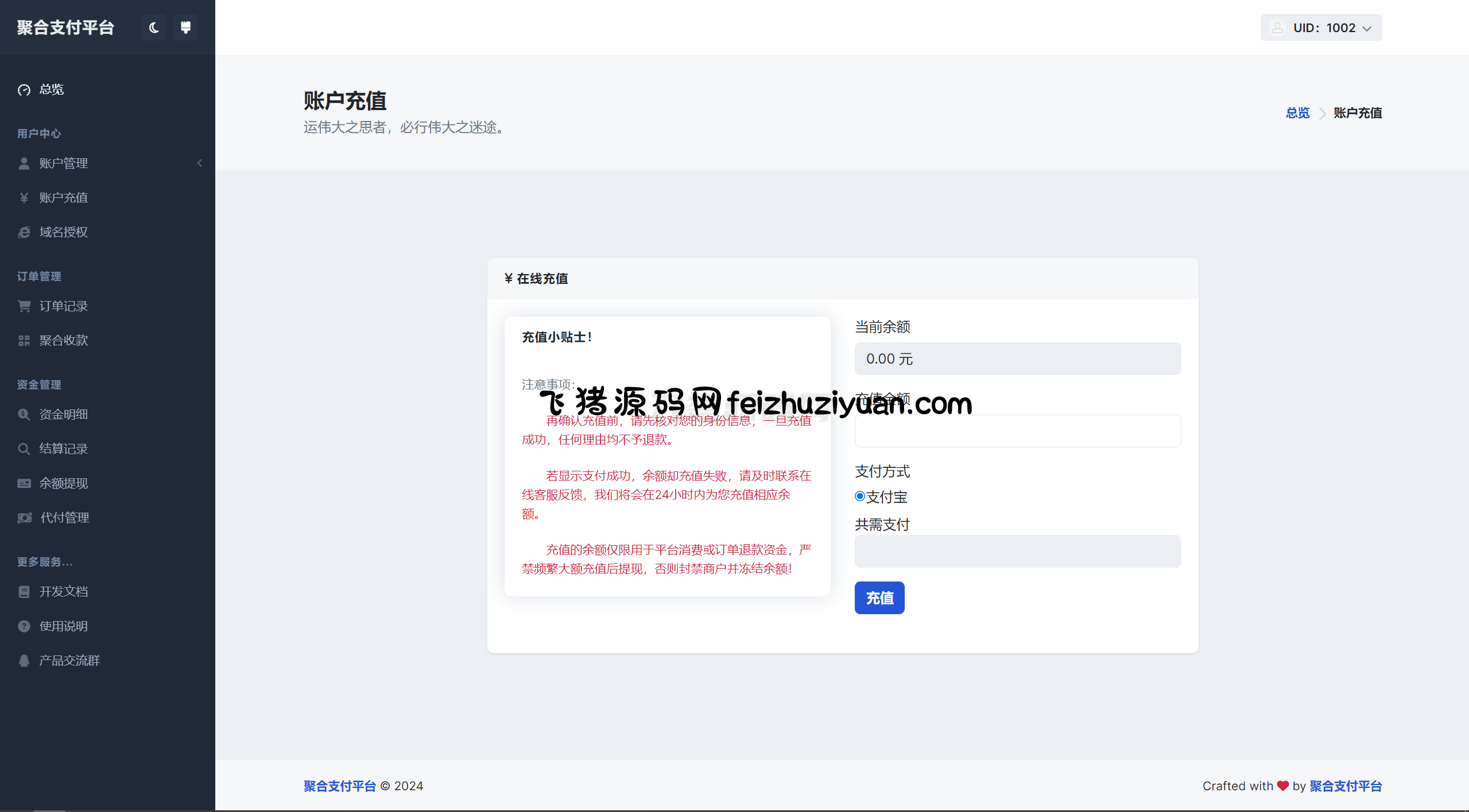 彩虹易支付用户中心美化主题 模版源码feizhuAdmin2个月前更新关注私信240995彩虹易支付用户中心美化主题 模版源码此内容为付费资源,请付费后查看¥2000黄金会员免费钻石会员免费立即购买您当前未登录!建议登陆后购买,可保存购买订单付费资源已售 23 承接技术与支持服务 本站可提供技术支持,另外本站可承接:各类网站、各类平台、各类源码、各类 APP、各类小程序、各类软件、各类盘口、Telegram 所有机器人开发定制、以及手机电脑远控的搭建开发定制都可以,最快当天就能出方案! 提供网站后台、域名、源码、服务器,一站式服务。从注册域名、配置服务器到后期维护全程包办,飞猪站长手把手教到会用,重要项目 3 天内上线,不玩套路,有问题随时找我们免费处理,让您省心又省力! 简介: 彩虹易支付用户中心美化主题 模版源码 使用本主题前请备份官方版本文件再进行解压到user目录替换! 图片: 购买须知 为了避免给您带来不必要的困扰,请务必仔细看下面的说明: 1. 本源码没有任何后门,也不会和我们服务器有任何通信,请您放心使用。 2. 本源码一次性买断,没有二次费用,并享受免费更新。 3. 为了使我们的产品能长久稳定发展,请不要使用我们的产品从事违反中华人民共和国法律、违反公序良俗的活动,否则我们有权拒绝服务,并配合有关单位予以处置。如果您不符合条件,请勿购买。 4. 售后是指通过 Telegram 与客服联系处理问题,售后过期不影响您对主题的使用和更新。免费三个月售后服务。售后服务时间为工作日早9点到晚5点。如果不在线可以 Telegram 留言,我们会尽快给您答复。 5. 售后服务包括程序的使用、BUG 的处理、意见建议等。不包括技术服务、网站优化、二次开发、环境配置、服务器运维等。 6. 代码类商品属于数字化商品,具有可复制性,不支持退款,详见《网络交易管理办法》第二章 第16条 第三类。 7. 购买前请仔细阅读我们的用户协议与免责声明: 用户协议 OR 免责声明。 © 版权声明 © 版权声明 文章版权归作者所有,未经允许请勿转载。本站资源均来自互联网,仅供研究学习,禁止违法使用和商用,产生法律纠纷本站概不负责!如有侵犯您的权益请与我们联系! 1. 欢迎您使用飞猪资源网(以下简称“本站”)。在您使用本站各项服务之前,请仔细阅读本《免责声明》。 2. 凡以任何方式登陆、浏览本站内容或直接、间接使用本站内容者,视为同意本站《免责声明》。 3. 本站提供的程序源码没有附带任何运营数据,只保证程序功能合法性、完整性。购买后对程序添加数据属于个人行为,与本站和开发者无关。 4. 本站不给涉黄、涉黑、涉赌、涉毒、涉电信诈骗等任何涉嫌违法活动站点提供任何技术帮助,如发现源码被用于非法站点,本站将列入售后黑名单,永不再提供任何服务。 5. 程序代码仅供学习用途,不得商用。违者导致的侵权、违法等后果需自行承担法律责任,本站和程序开发者不承担任何连带责任。 6. 未经本站允许不得将源码进行转售、分发等行为,请尊重作者劳动成果和版权,谢谢支持。 7. 本网页及演示站内容、图片、视频为模板演示数据,所有图片均来源于网络,版权归原作者所有。如有侵权,请联系我们书面反馈,核实后将立即删除。 8. 本站有权根据实际需要修改本协议,服务条款的解释权与修改权归本站所有。 THE END其他模板插件 文章版权归作者所有,未经允许请勿转载。本站资源均来自互联网,仅供研究学习,禁止违法使用和商用,产生法律纠纷本站概不负责!如果侵犯了您的权益请与我们联系!点赞95赞赏 分享QQ空间微博QQ好友海报分享复制链接收藏