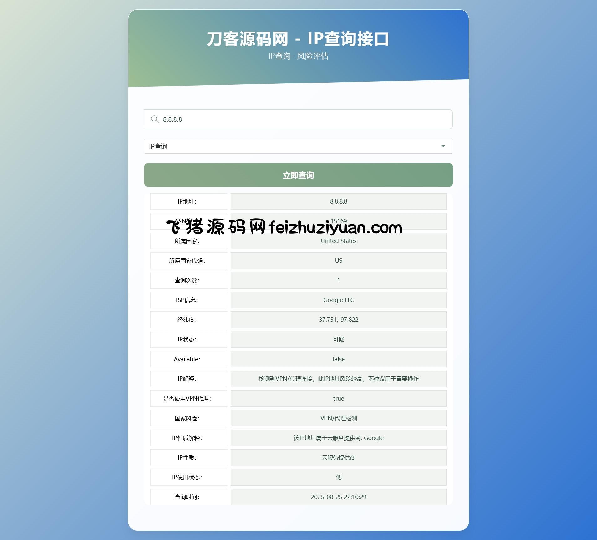 最新刀客IP地址信息查询系统源码_含API接口_首发_自适应手机端