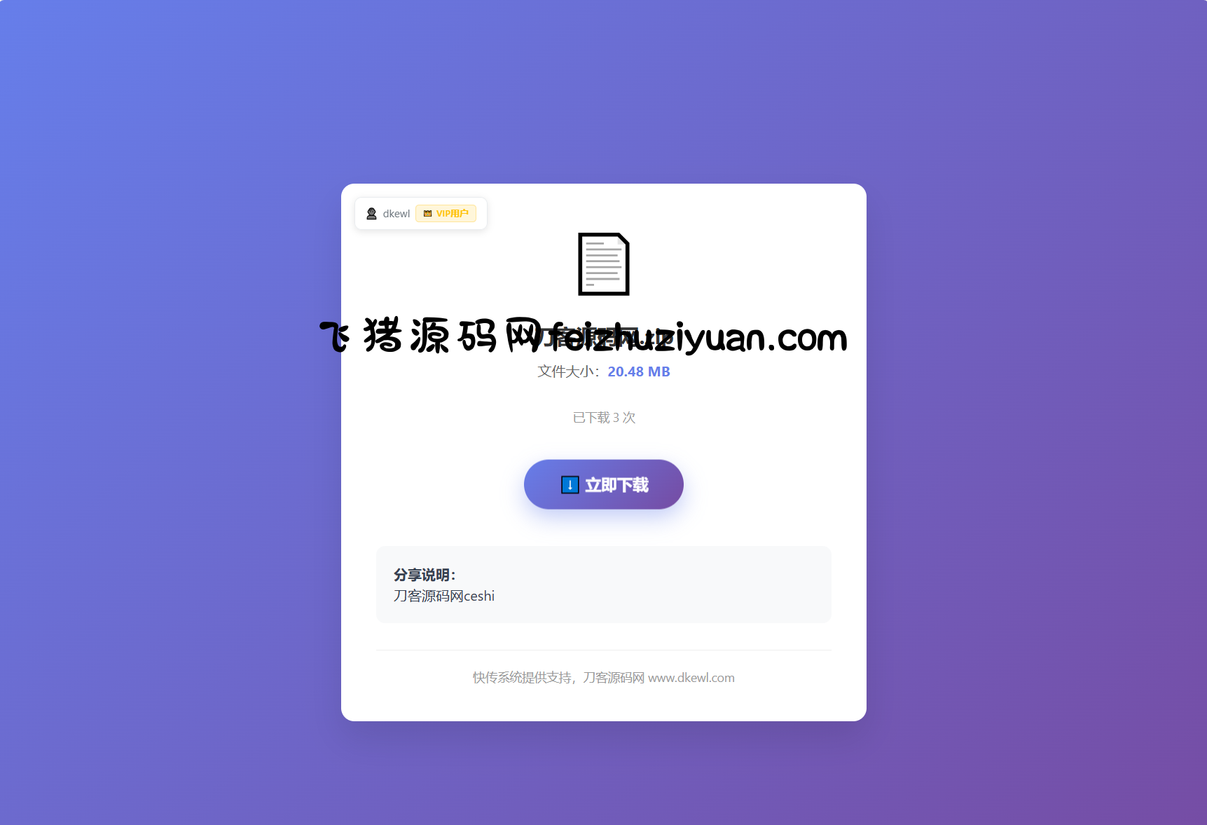 全新临时文件快传系统源码 快传网盘系统 全开源附教程feizhuAdmin3个月前更新关注私信1153469全新临时文件快传系统源码 快传网盘系统 全开源附教程此内容为付费资源,请付费后查看¥2000黄金会员免费钻石会员免费立即购买您当前未登录!建议登陆后购买,可保存购买订单付费资源已售 42 承接技术与支持服务 本站可提供技术支持,另外本站可承接:各类网站、各类平台、各类源码、各类 APP、各类小程序、各类软件、各类盘口、Telegram 所有机器人开发定制、以及手机电脑远控的搭建开发定制都可以,最快当天就能出方案! 提供网站后台、域名、源码、服务器,一站式服务。从注册域名、配置服务器到后期维护全程包办,飞猪站长手把手教到会用,重要项目 3 天内上线,不玩套路,有问题随时找我们免费处理,让您省心又省力! 简介: 全新临时文件快传系统源码 快传网盘系统 全开源附教程 时隔多日,咱们的开发者投稿来了“船新版本”,这次功能很全了 特色功能:懒得写了,看图吧,该有的都有 老版本传送门:点我点我 鸣谢作者&投稿人:一九云服务器 图片: 用户中心: 后台管理: 购买须知 为了避免给您带来不必要的困扰,请务必仔细看下面的说明: 1. 本源码没有任何后门,也不会和我们服务器有任何通信,请您放心使用。 2. 本源码一次性买断,没有二次费用,并享受免费更新。 3. 为了使我们的产品能长久稳定发展,请不要使用我们的产品从事违反中华人民共和国法律、违反公序良俗的活动,否则我们有权拒绝服务,并配合有关单位予以处置。如果您不符合条件,请勿购买。 4. 售后是指通过 Telegram 与客服联系处理问题,售后过期不影响您对主题的使用和更新。免费三个月售后服务。售后服务时间为工作日早9点到晚5点。如果不在线可以 Telegram 留言,我们会尽快给您答复。 5. 售后服务包括程序的使用、BUG 的处理、意见建议等。不包括技术服务、网站优化、二次开发、环境配置、服务器运维等。 6. 代码类商品属于数字化商品,具有可复制性,不支持退款,详见《网络交易管理办法》第二章 第16条 第三类。 7. 购买前请仔细阅读我们的用户协议与免责声明: 用户协议 OR 免责声明。 © 版权声明 © 版权声明 文章版权归作者所有,未经允许请勿转载。本站资源均来自互联网,仅供研究学习,禁止违法使用和商用,产生法律纠纷本站概不负责!如有侵犯您的权益请与我们联系! 1. 欢迎您使用飞猪资源网(以下简称“本站”)。在您使用本站各项服务之前,请仔细阅读本《免责声明》。 2. 凡以任何方式登陆、浏览本站内容或直接、间接使用本站内容者,视为同意本站《免责声明》。 3. 本站提供的程序源码没有附带任何运营数据,只保证程序功能合法性、完整性。购买后对程序添加数据属于个人行为,与本站和开发者无关。 4. 本站不给涉黄、涉黑、涉赌、涉毒、涉电信诈骗等任何涉嫌违法活动站点提供任何技术帮助,如发现源码被用于非法站点,本站将列入售后黑名单,永不再提供任何服务。 5. 程序代码仅供学习用途,不得商用。违者导致的侵权、违法等后果需自行承担法律责任,本站和程序开发者不承担任何连带责任。 6. 未经本站允许不得将源码进行转售、分发等行为,请尊重作者劳动成果和版权,谢谢支持。 7. 本网页及演示站内容、图片、视频为模板演示数据,所有图片均来源于网络,版权归原作者所有。如有侵权,请联系我们书面反馈,核实后将立即删除。 8. 本站有权根据实际需要修改本协议,服务条款的解释权与修改权归本站所有。 THE END网站源码 文章版权归作者所有,未经允许请勿转载。本站资源均来自互联网,仅供研究学习,禁止违法使用和商用,产生法律纠纷本站概不负责!如果侵犯了您的权益请与我们联系!点赞469赞赏 分享QQ空间微博QQ好友海报分享复制链接收藏