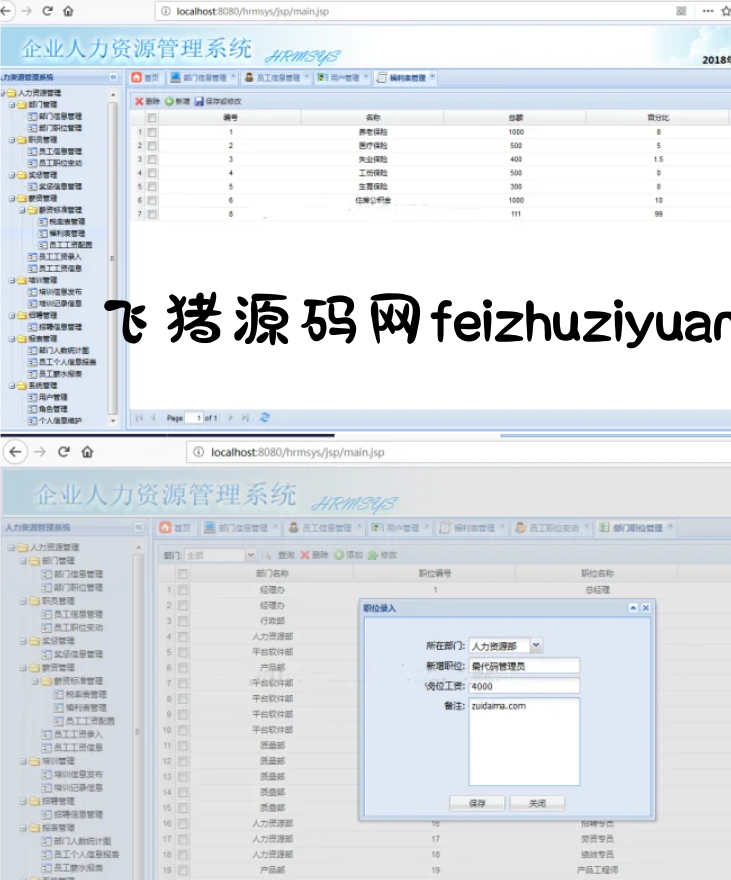 企业人力资源管理项目功能主要有:会话过滤、MD5加密、文件上传、权限设置、报表统计……. 是一个比较成熟的项目。