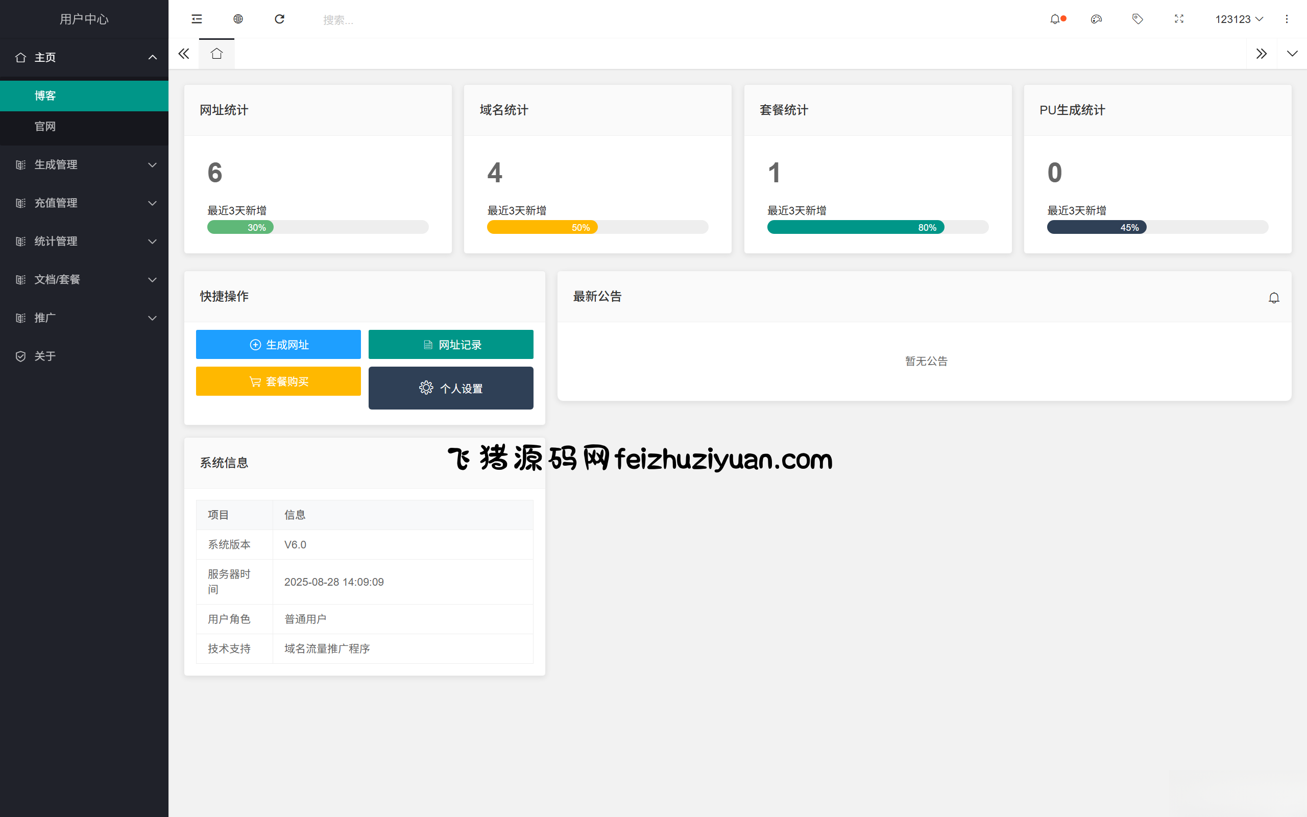 业务处理:网址生成[单次/批量生成,可选域名池,短网址,库Ua等自定义选择]数据化管理,统计每个生成的访问次数