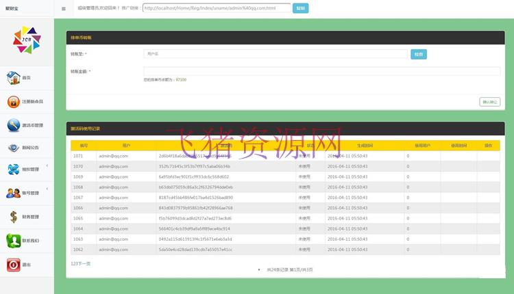 将data下数据库文件导入mysql,修改User\\Home\\Conf\\config.php及snadmin\\Home\\Conf\\config.php 配置好数据库的名称和密码后保存文件,上传服务器后台:域名/admin.php admin 123456 前台:admin@qq.com 123456