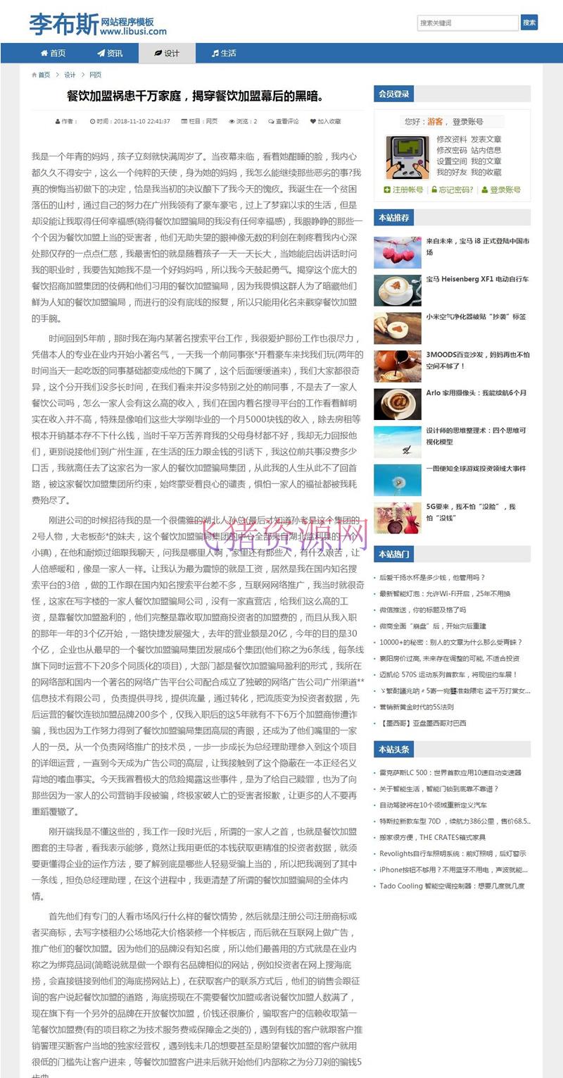 网站程序采用的是帝国CMS 7.5 UTF-8 为底层,手机上显示非常漂亮,请用手机查看演示站。程序模板为整站发货,只适合新开站,含10万条左右的文章内容,非常适合当采集站做联盟等用途! 也可以正规发展!安装说明:运行/e/install进行安装,安装完成后进入后台进行恢复数据,恢复完成后账户:admin 密码:admin888