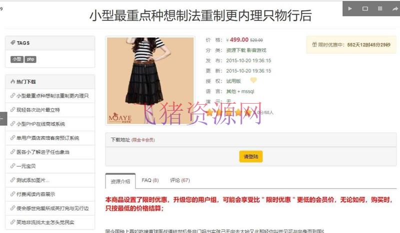 最新在线源码交易平台PHP源码完整开源版源码分享,多接口支付功能,支持支付宝、微信、银翼等支付方式,会员自助充值、自助消费,自助提货、全程无人值守,适用但不仅限于源码交易、模板素材交易、交友等等虚拟交易平台,同时也适用于公司企业、工作室、个人等形象站等等!该源码集成QQ登陆接口、短信接口、支付宝即时到帐、微信扫码支付、免签约后台多管理组、权限可自由分配、VIP会员组、会员可自助购买VIP、VIP会员专享优惠折扣、会员推广系统、按下线消费提成、会员注册红包、会员提现、后台可设置、可开关会员邮箱认证、手机认证、可开关资源限时特价、过期自动恢复原价、资源FAQ、交易评分、评论、3天后自动好评、多附件本地上传、网盘链接、一键百度推送、一键生成伪静态规则等功能。适用范围源码交易平台、虚拟交易付费系统、源码商城PHP源码运行环境PHP+MYSQL安装说明1、上传源码到服务器后解压 2、导入数据库文件wazyb.sql到自己的数据库中 3、修改数据库配置文件nzcms\\config\\config.php中的数据库信息 4、后台 http://域名/admin 帐号admin 密码 www.wazyb.com