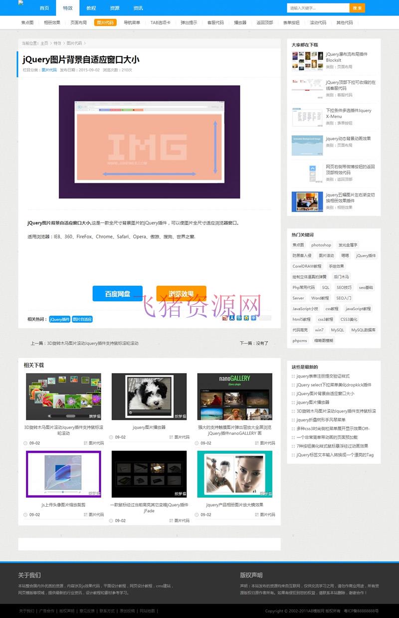 蓝色素材资源文章类织梦模板 站长资源素材教程类网站源码下载 这款模板使用范围极广,不仅仅局限于一类型的企业,你只需要把图片和产品内容更换下,适用于任何行业。1、该模板代码干净整洁; 2、效果相当的炫酷,相当简洁大气高端,模板简单,全部已数据调用,只需后台修改栏目名称即可 3、适用于资源下载网站模板、教程素材类网站源码; 4、网站手工DIV+css,代码精简,首页排版整洁大方、布局合理、利于SEO、图文并茂、静态HTML; 5、首页和全局重新做了全面优化,方便大家无缝使用;