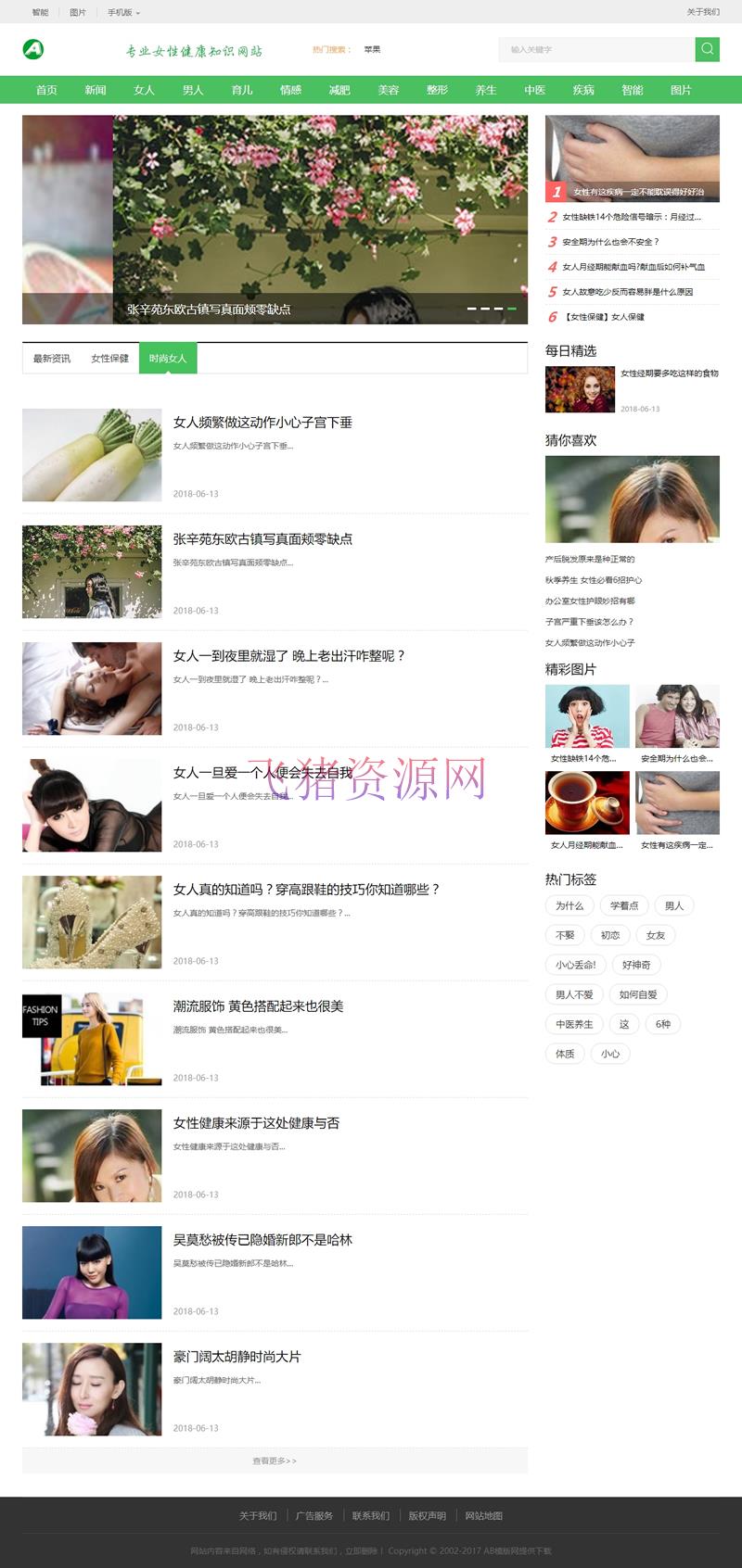 (带手机版数据同步)女性健康养生资讯网类织梦模板 新闻资讯门户网站源码下载 这款模板使用范围极广,不仅仅局限于一类型的企业,你只需要把图片和产品内容更换下,适用于任何行业。 本套织梦模板采用现在非常流行的全屏自适应布局设计,且栏目列表以简洁,非常时尚大气。页面根据分辨率大小而自动排版,很大程度上改善了页面宽度兼容问题, 适应大部分显示器分辨率尺寸哦。模板整体以多种颜色为主色调,适合做各种类型的网站。 同一个后台管理三网合一简单方便,体验极佳1、该模板代码干净整洁; 2、效果相当的炫酷,相当简洁大气高端,模板简单,全部已数据调用,只需后台修改栏目名称即可 3、适用于养生资讯织梦模板、新闻资讯门户网站源码; 4、网站手工DIV+css,代码精简,首页排版整洁大方、布局合理、利于SEO、图文并茂、静态HTML; 5、首页和全局重新做了全面优化,方便大家无缝使用;
